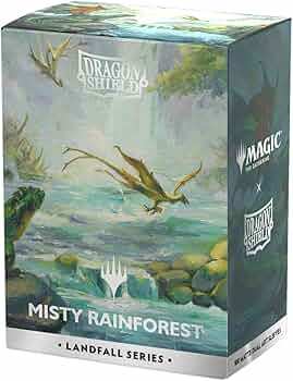 Description: The fetch lands are among the most iconic Magic: The Gathering™ cards ever made. Now, as part of the Landfall Series, you can get the jaw-dropping showcase version of Misty Rainforest – with dragons! – as Dragon Shield Matte Dual Art Sleeves. The Landfall Series celebrates lands, the gorgeous vistas that serve as the very foundation of Magic: The Gathering. Without lands, no powerful spells would be cast and mighty creatures could not be summoned. The Landfall Series lets you draw the power to protect your cards from the very lands themselves. Matte Dual sleeves are a gorgeous twist on the fan-favorite Matte sleeves. The black interior perfectly frames your cards for a stylish presentation complementing the stunning art on the back. The artwork is printed directly onto the sleeve, meaning the artwork is as high-quality, durable and peel-free as the sleeves they are forged onto.