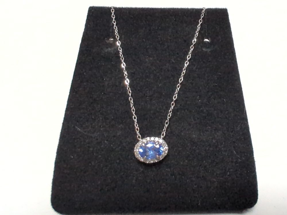 Gold 10kt White 1.42gms Necklace Sz:18" Oval Cut Blue Tanzanite Gemstone and 0.08 Carat TW Diamond Halo Pendant Necklace White Gold Necklace Sz:18" 1.42g/10kt