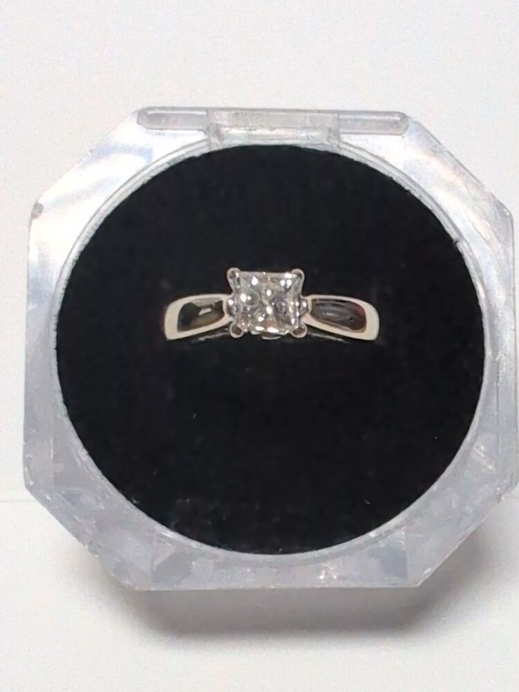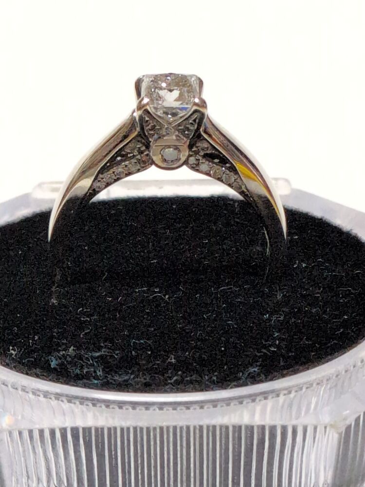 Gold 14kt White Engagement 4.29gms Ring Sz:9 with 1x66pnt, 23x1pnt, and 2x2pnt diamonds (0.93TCW) White Gold Engagement Ring Sz:9 4.29g/14kt