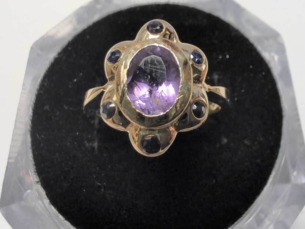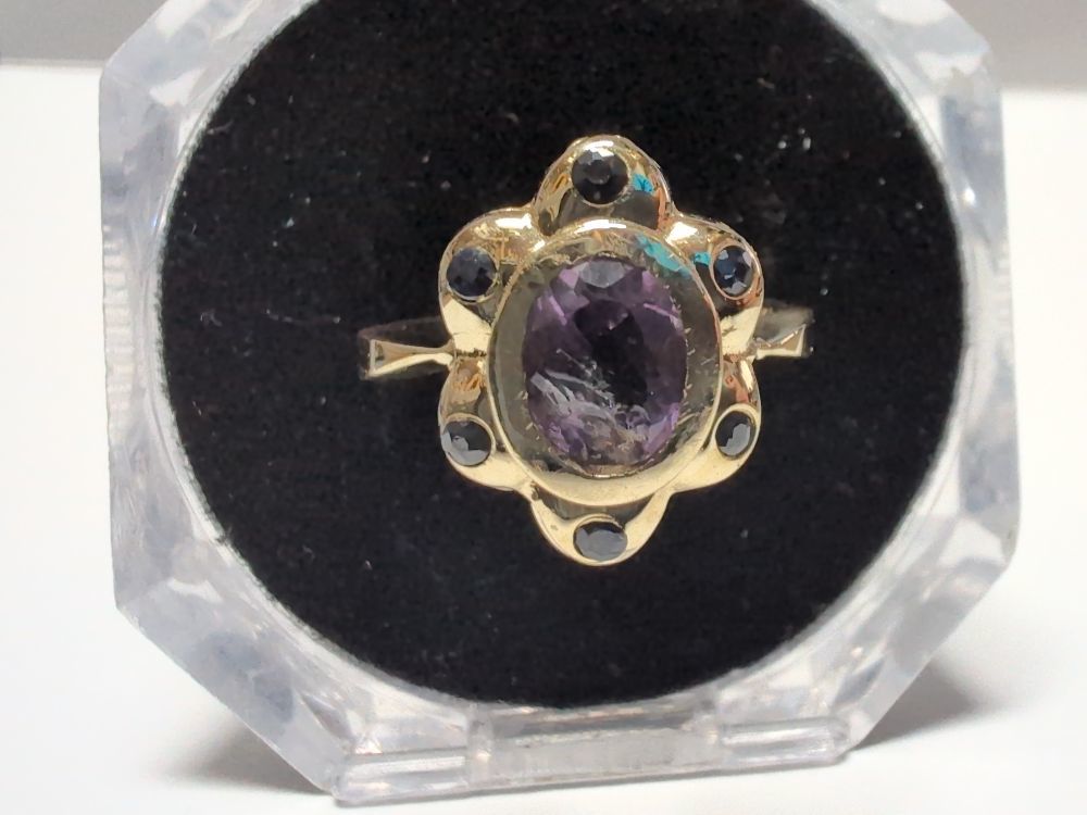 Yellow Gold 10k Amethyst And Sapphire Ring Sz:7.5