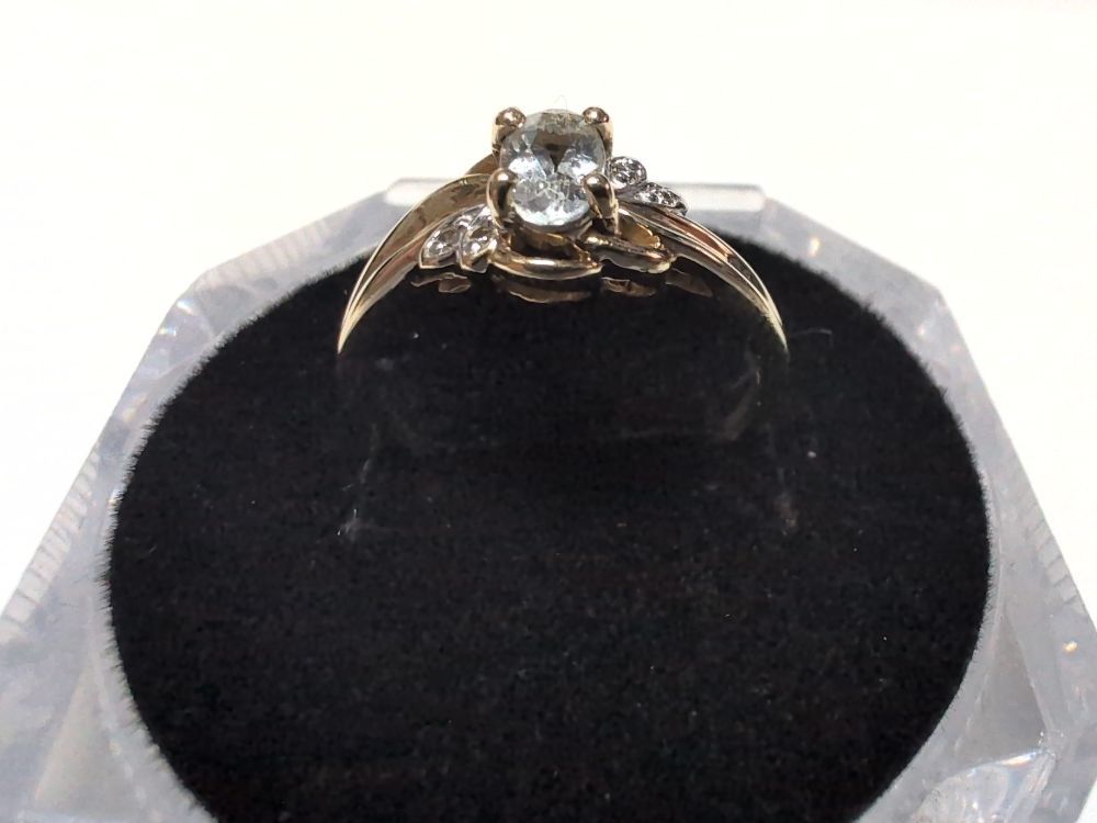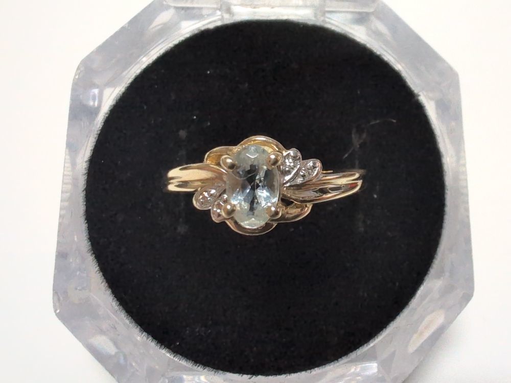 Yellow Gold 10k Aquamarine and Diamond Ring Sz:8.5