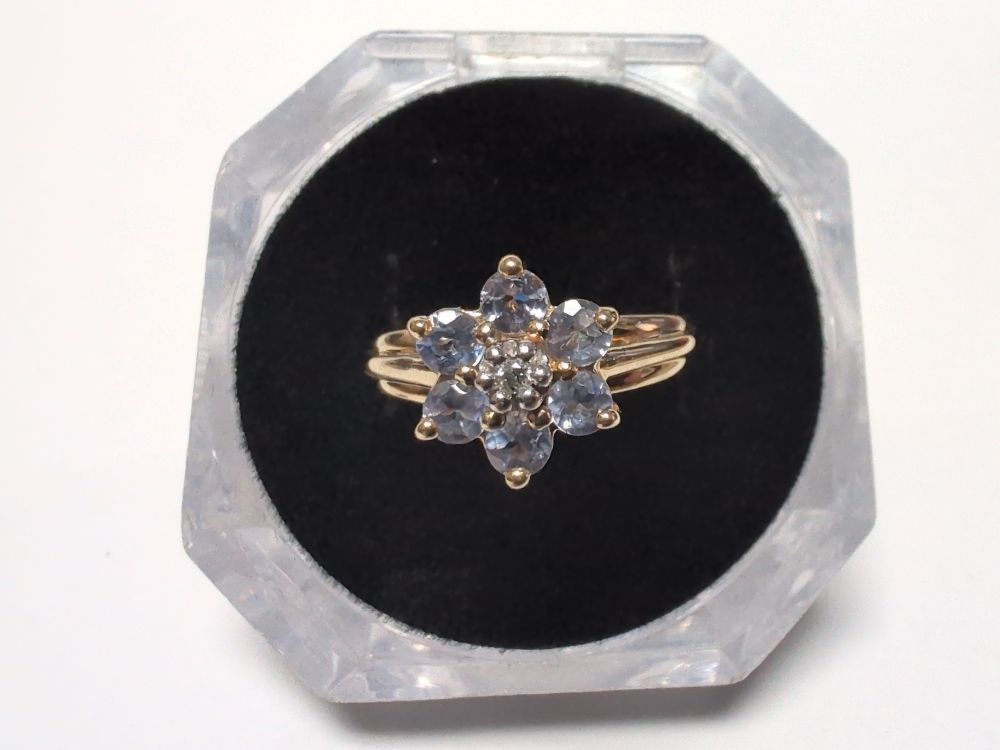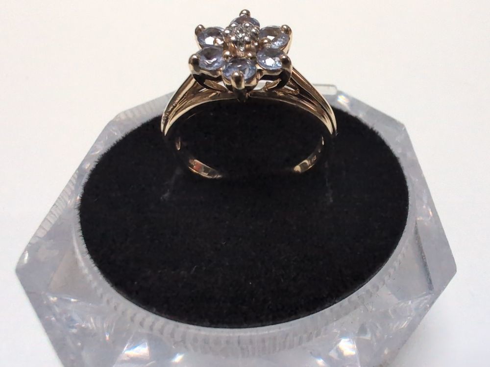 Yellow Gold 10k Diamond and Tanzanite Cluster Ring Sz:7.5
