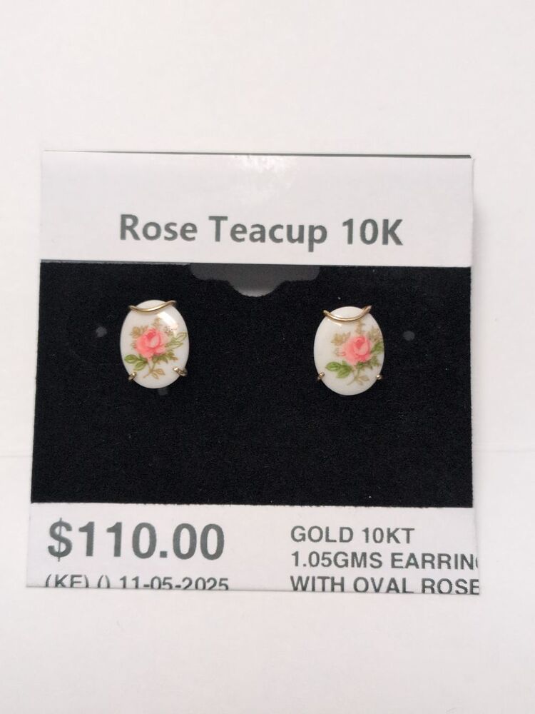 Gold 10kt 1.05gms Earrings with oval roses on them Gold Earrings 1.05g/10kt