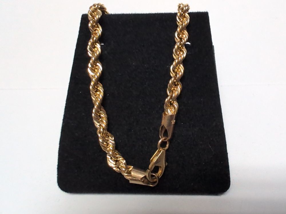 Adorn your neckline with this 10k Yellow Gold Rope Necklace - a timeless piece emitting luminous warmth. Its intricately woven links whisper of mystery and adventure, gleaming at every twist and turn. Experience elegance redefined, limited only by your imagination, not by word counts. Ignite your golden glow today.
