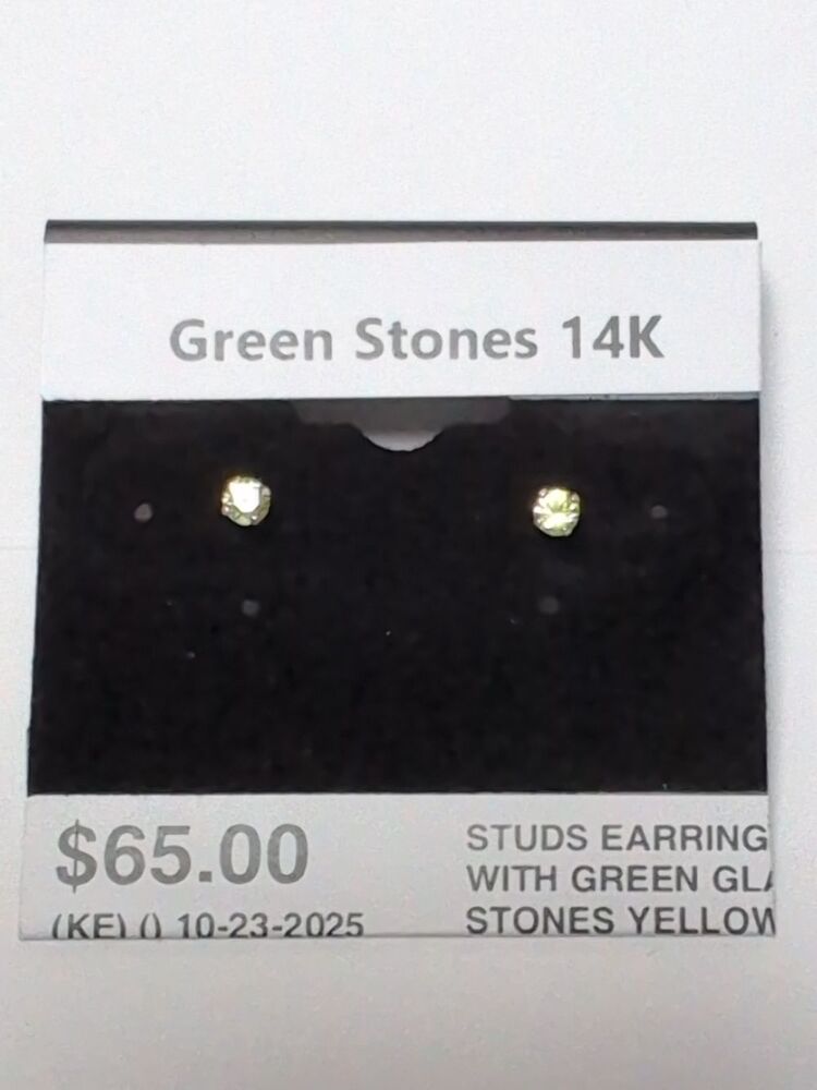 Studs Earrings with green glass stones Yellow Gold Studs Earrings 0.38g/14kt