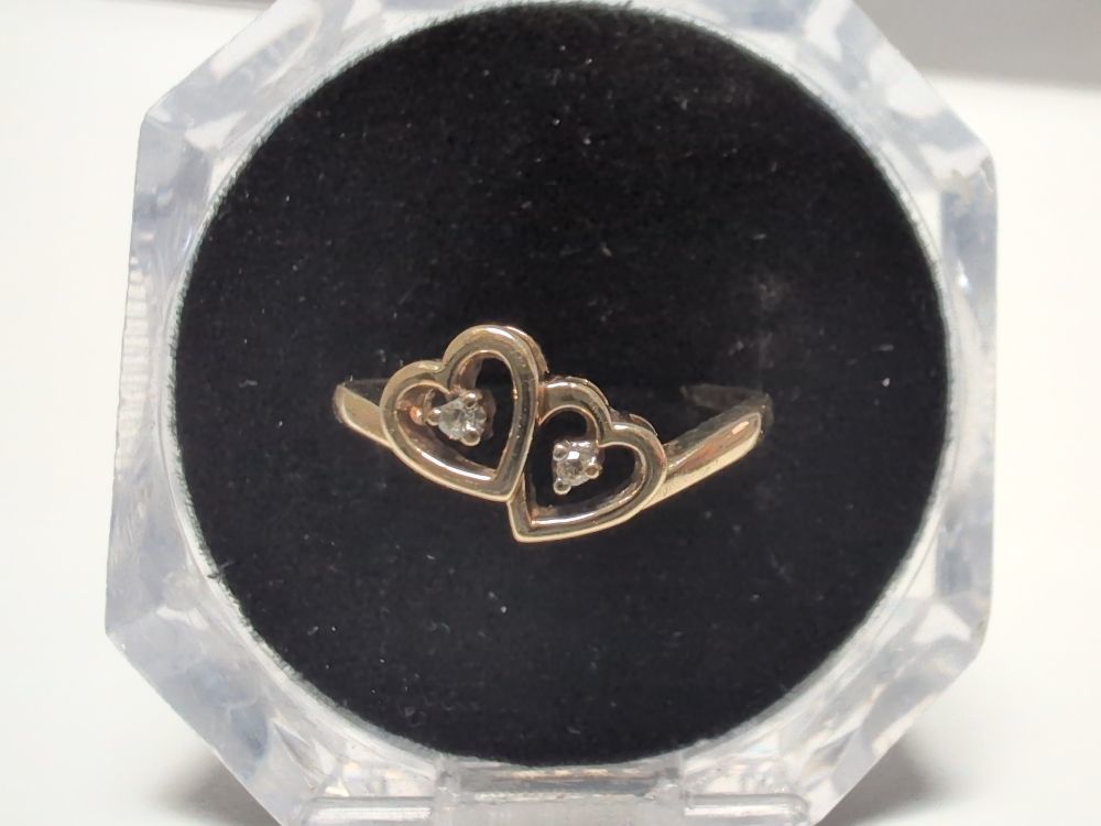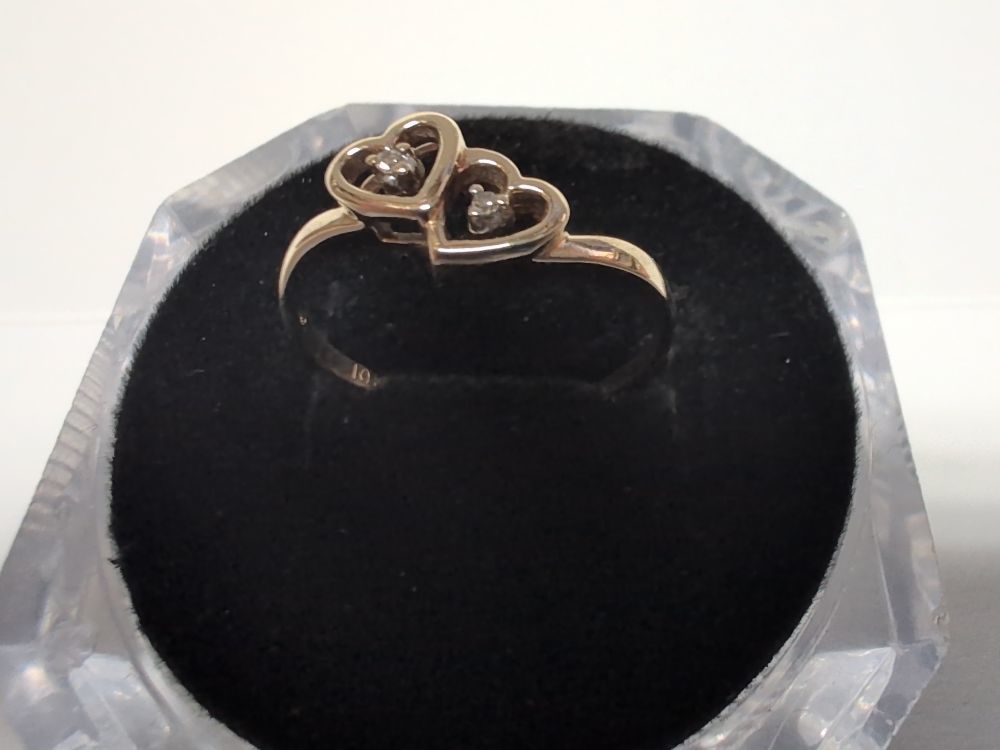 Gold 10kt Yellow 1.26gms Ring Sz:8.25 with 2 hearts with 2 small diamonds Yellow Gold Ring Sz:8.25 1.26g/10kt